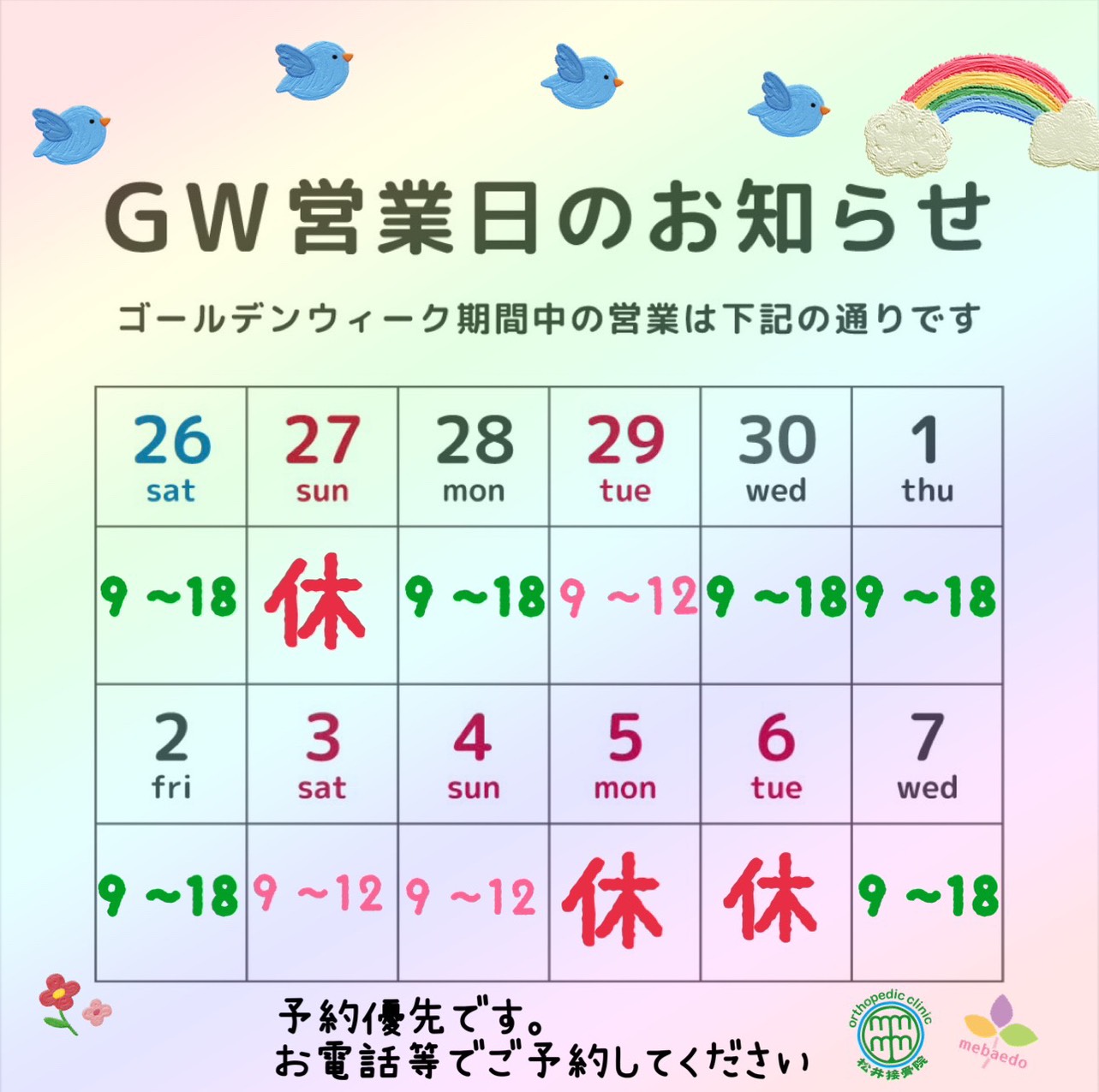 ゴールデンウィークの営業について